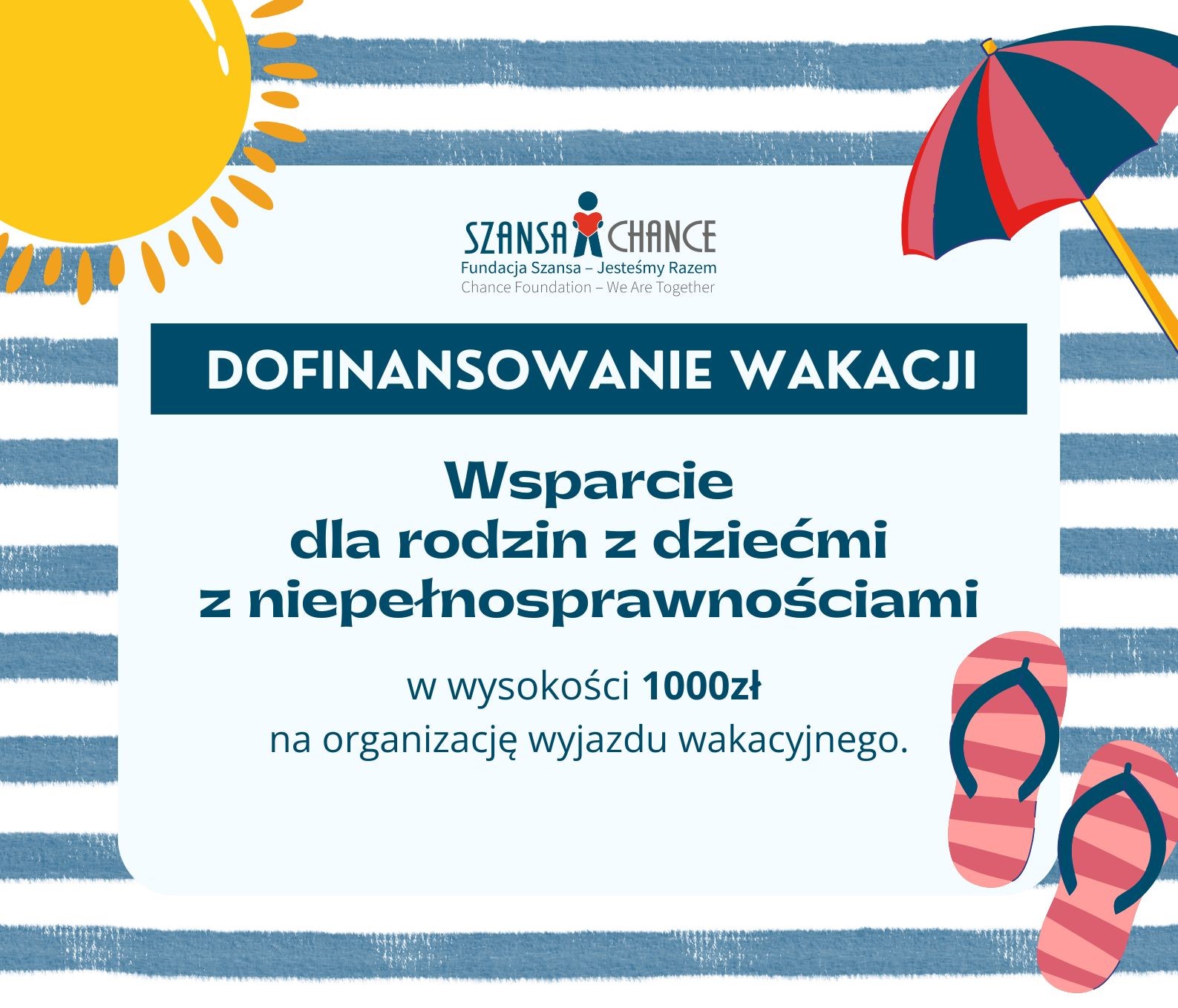Fundacja Szansa – Jesteśmy Razem z radością informuje, że w ramach akcji „Szansa na wakacje” przyznała dofinansowania wakacyjnego wypoczynku dla kilkunastu rodzin z całej Polski, wychowujących dzieci z niepełnosprawnościami. Jedna z nagrodzonych rodzin pochodzi z województwa podlaskiego.